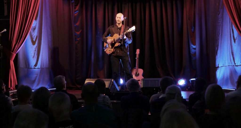 Last night’s opening set by Bassett may have been short but they showed their great range of interpretations of older songs as well as their own immaculate compositions. And that’s even before we were mesmerised by their combined voices and the wonderful guitar playing, both acoustic and electric of Sam Clark. There was mention of a return visit in the new year. That is already a concert to look forward to.