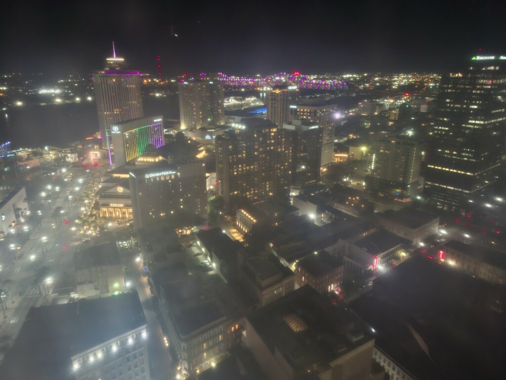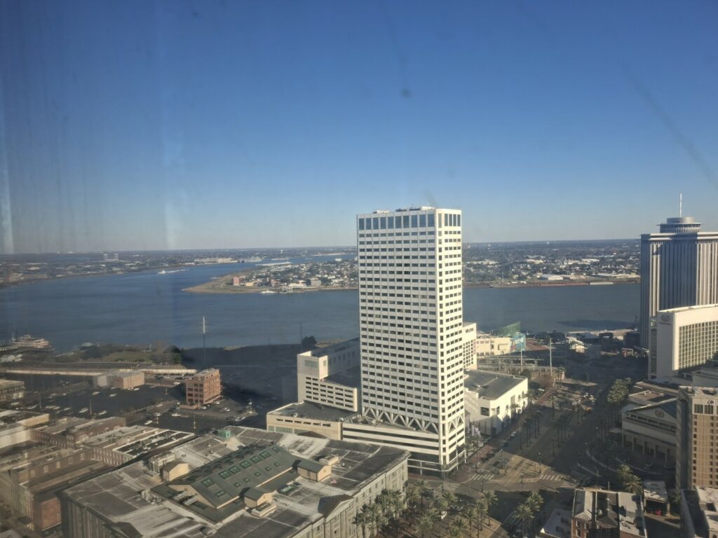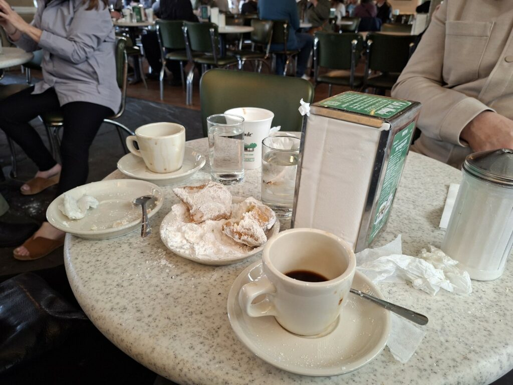 View from the 40th floor on arrival at our hotelMaking ourselves at home…Beignets at Cafe Du Monde on our first morning