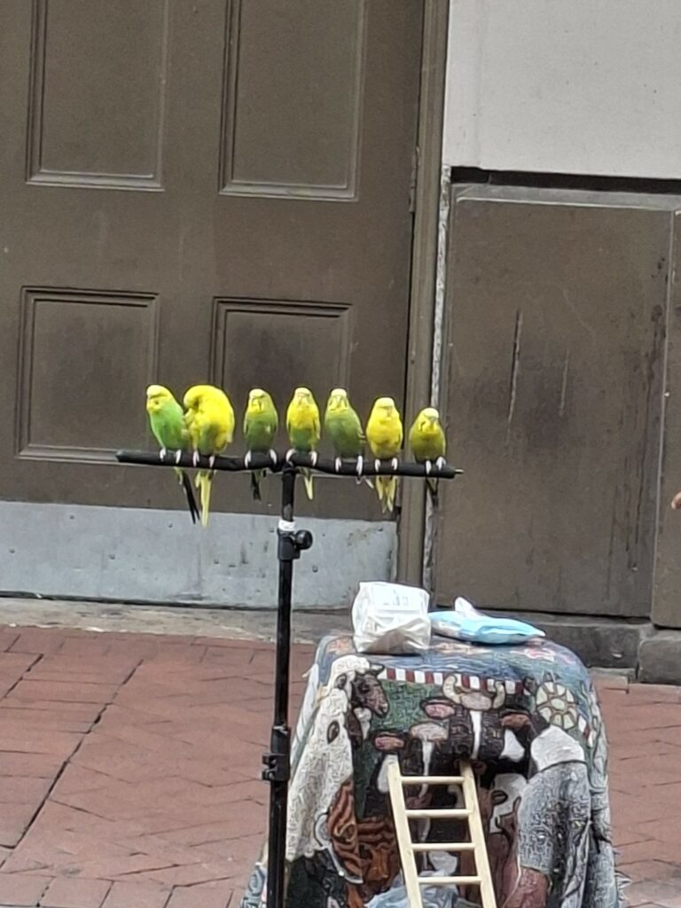 Busking budgies!Lower Bourbon Street at night