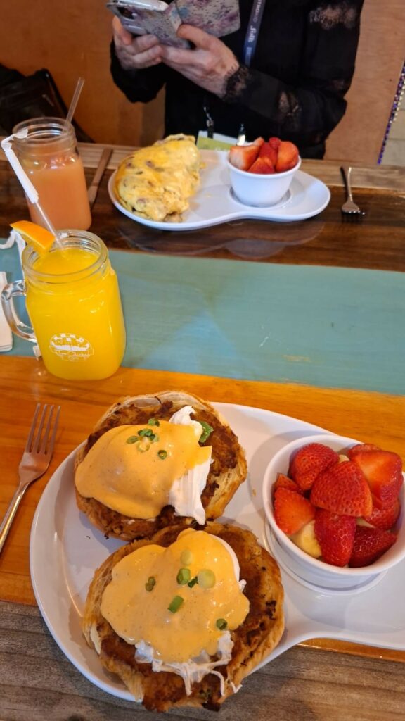 The lifts, impossible to use come unofficial showcase time, you have to resort to the fire stairs!A first visit to the exhibition hall…Brunch in the Two Chicks, a great cafe in Gravier St.The iconic streetcars